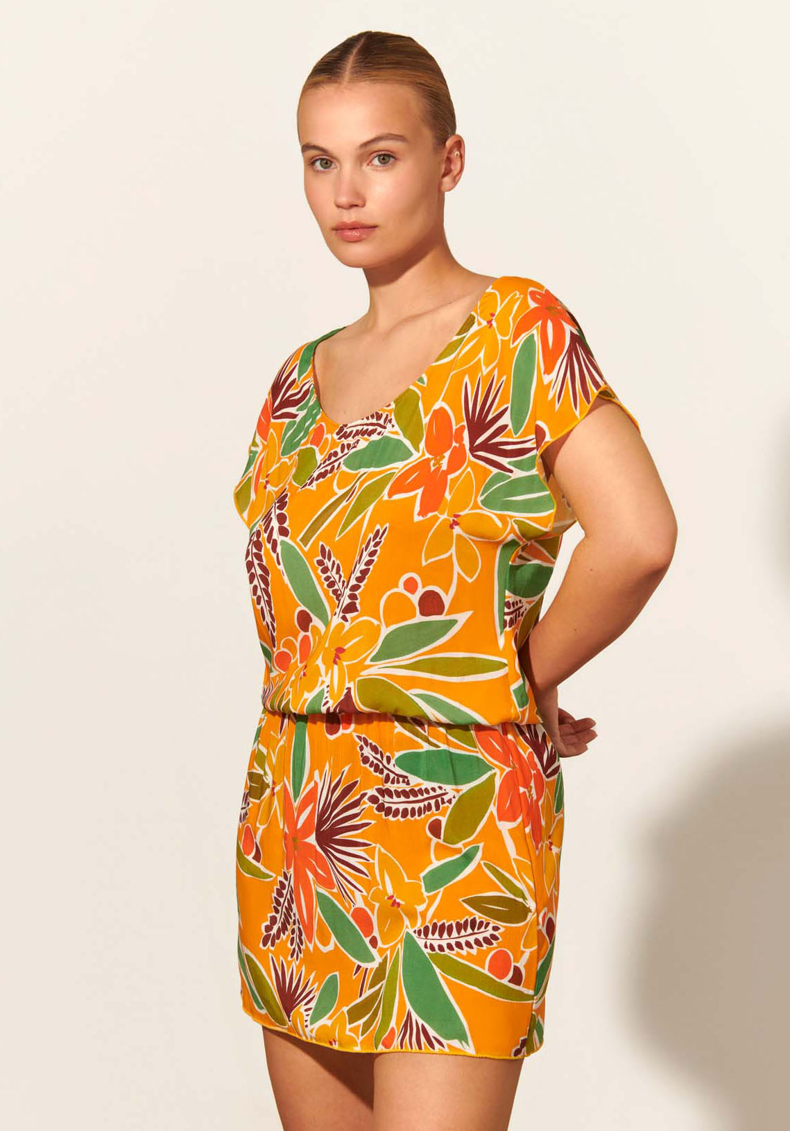 Combina perfectamente con todas las prendas de la colección Rachel y con cualquier bikini o bañador liso en marrón, verde o mandarina.